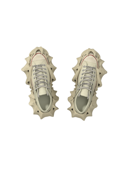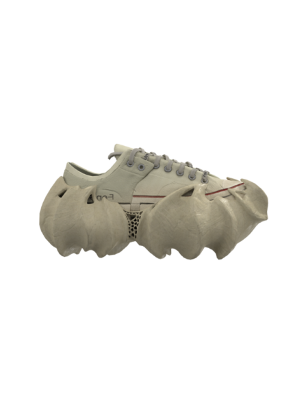 茶壺大底的靈感來自變形茶壺,與 Chuck Taylor 2-in-1 相互輝映;由 3D 打印模具製成,透氣耐磨的構造加上可外加鞋帶的籠狀設計,為這個 Feng Chen Wang 與 Converse 的聯名作品注入別樹一格之感。