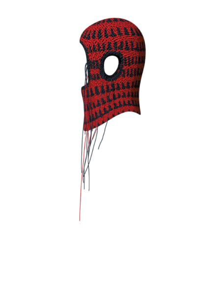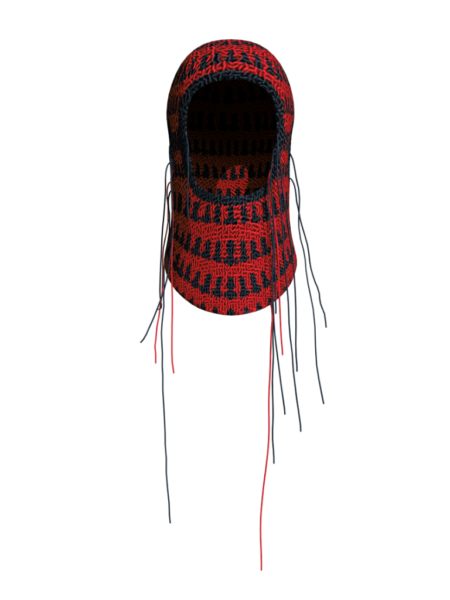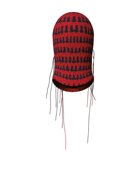 這款針織頭套是 Christian Stone 的標誌性產品,設計採用鮮艷斑斕,配合毛線垂墜細節,為造型點晴。