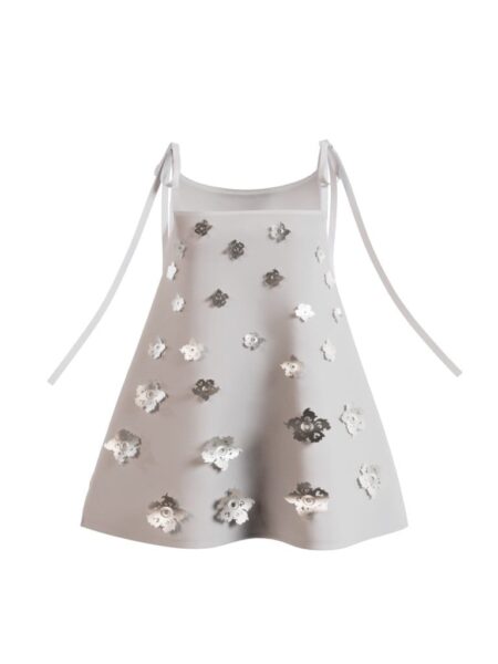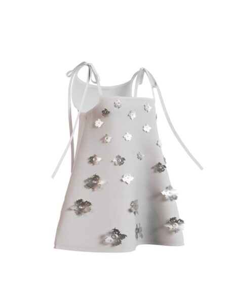 Debby 白色吊帶銀色花卉造型短裙 – FabriX