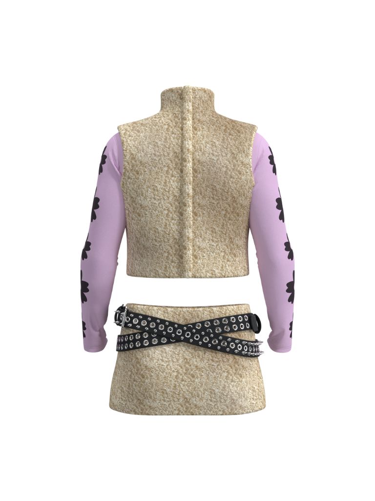 粉紅色彈性「 I AM NOT CUTE」及花卉圖案長袖上衣 / 毛毛質地迷你裙 / 毛毛質地小企領背心配拉鍊