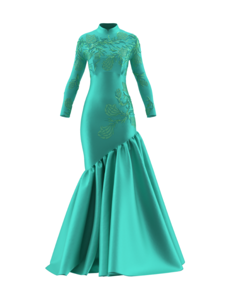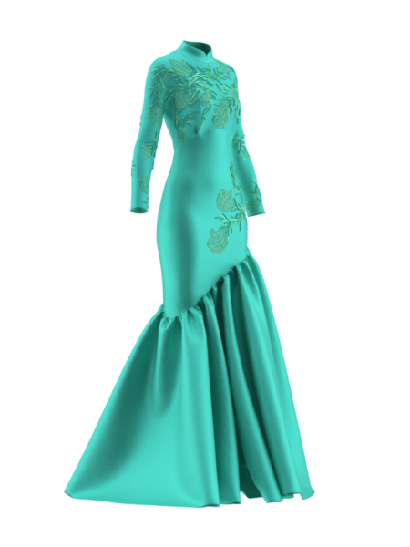 高級訂制翡翠綠綴飾禮服裙 – FabriX