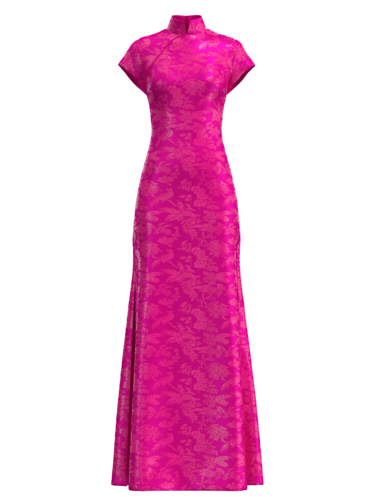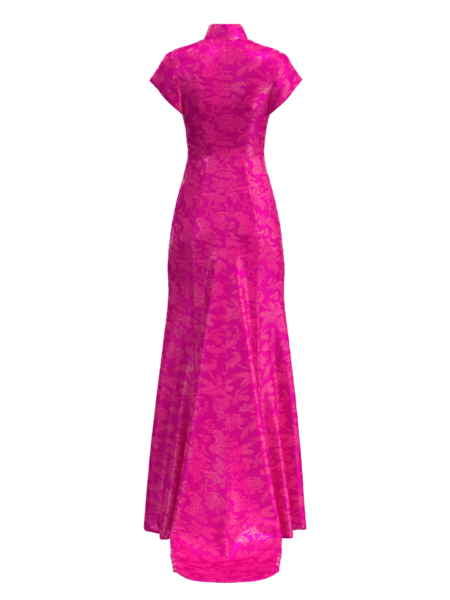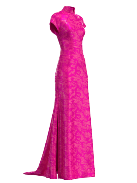 高級訂制桃紅玫瑰提花旗袍 – FabriX