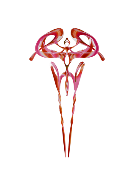 由紅寶石製成的全身套裝,底部綴以雙面凹凸髮簪以重塑女性子宮內的神聖曲線美。