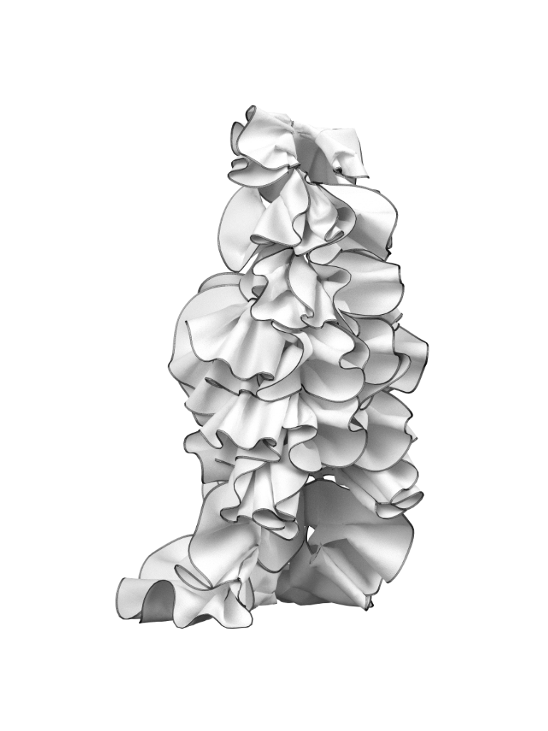 This dress is inspired by colours and forms found in the natural world such as plants, flowers and marine life – integral elements of the cycle of nature where human beings also belong to. By donning the dress, the wearer embraces this harmonious cycle and becomes one with nature.