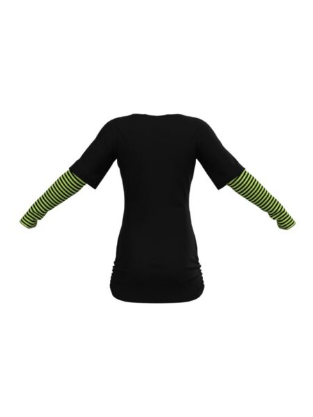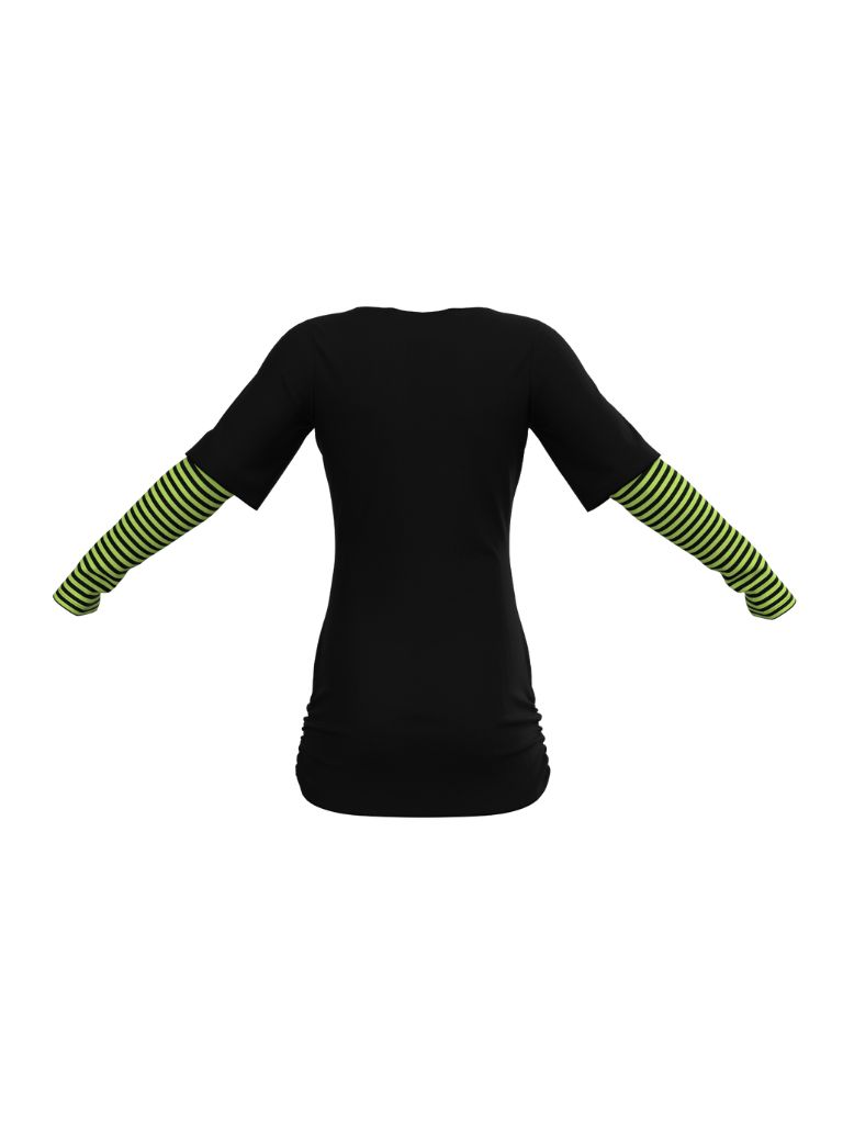 黑色 Holly 印花棉質船領配綠黑色橫條長袖上衣 – FabriX