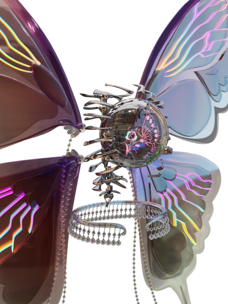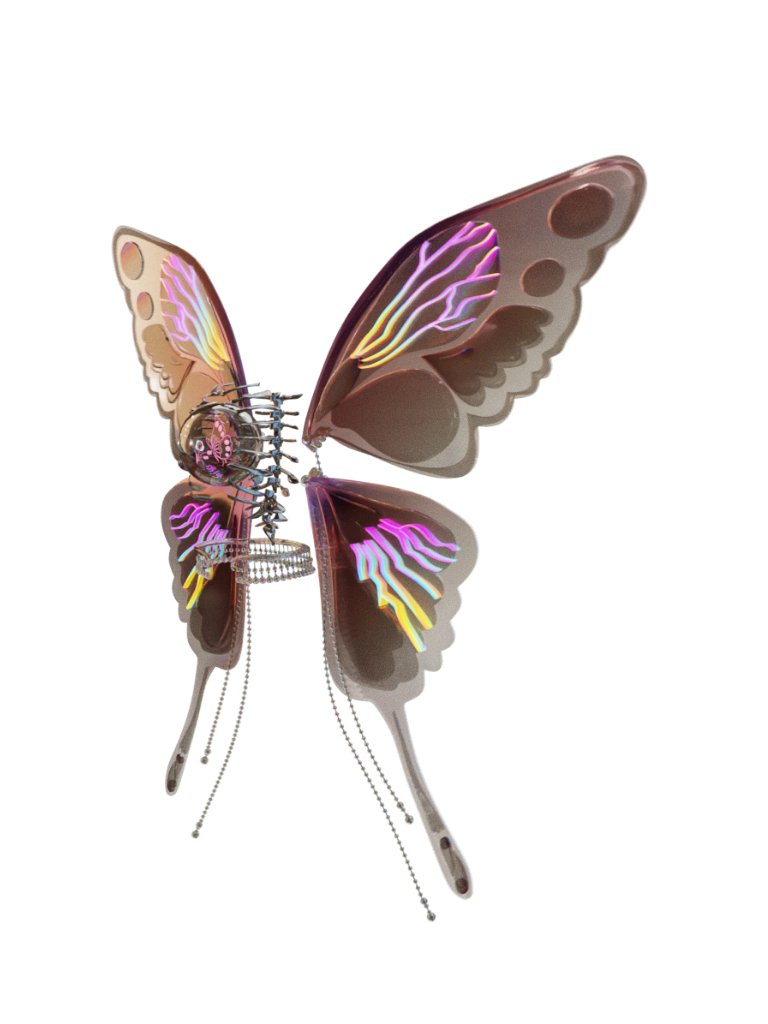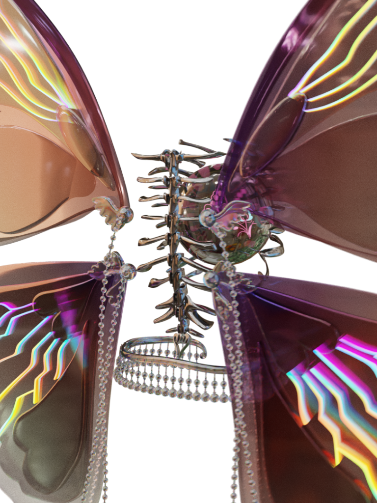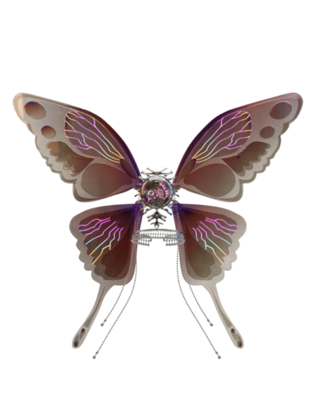 \全個「Skeleton Butterfly Wings」以晶瑩剔透的球體核心,有如孕育整個宇宙在其中的胚體般。講究美學之餘,飄動的雙翼亦隨時隨地為穿著者帶來生機盎然之感;裝飾小鐘發出如仙界細語的聲音,令所有生命體都能在這個星際搖籃中茁壯成長。