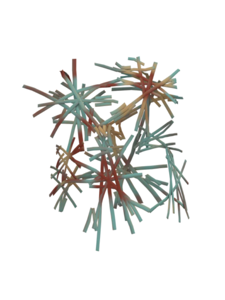 「Spark Top」是一件體現脆弱與力量交替的最佳作品。這件浮誇的虛擬服飾,透過聲音與顏色的共存共生,展示出生命的多采多姿。其中的煙火形象線條及比例更是由 SHEK LEUNG 的手作刺繡系列而來。