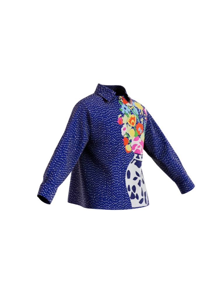 由棉布開始全手工織造的Scarlet 外套,綴以精緻的手工刺繡花束貼花裝飾。這種源自印度傳統的「Kantha」刺繡法,因婦女通過回收舊紗麗製作毯子而被發揚光大。這款鬆身外套配有獨特的圖形領口與襯裡縫線處理,為整體設計注入現代感。